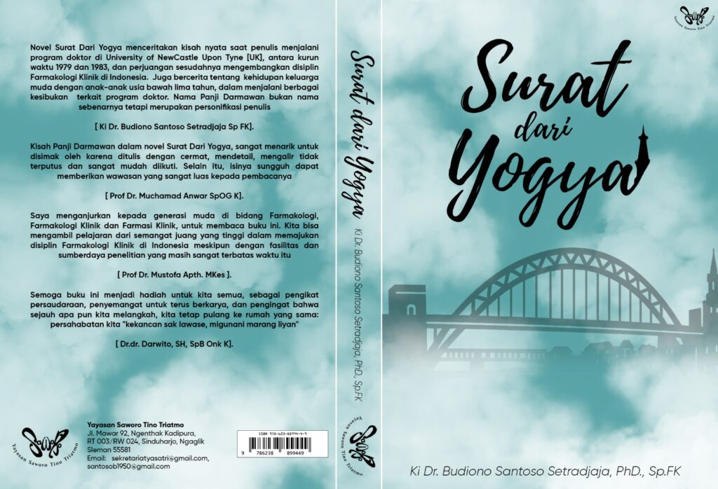 Surat Dari Yogya menceritakan pengalaman penulis saat menjalani pendidikan program doktor di University of NewCastle upon Tyne [UK], antara kurun waktu 1979 sampai selesai di tahun 1983 dan perjuangan merintis disiplin Farmakologi Klinik di Indonesia dan di dunia global. Buku ini tidak hanya bercerita tentang segi akademik semata tetapi juga liku-liku kehidupan keluarga muda Panji Darmawan dan Lina Yasin dan anak anak mereka yang masih usia bawah lima tahun.